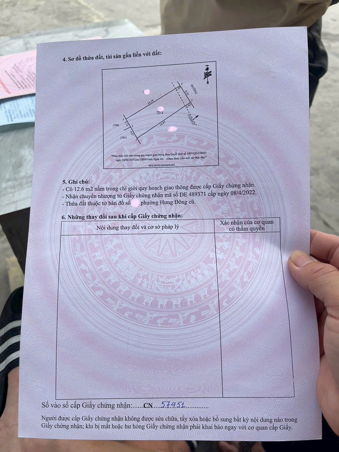 - Có khoảng 12,6 m² nằm trong chỉ giới quy hoạch giao thông (đã thể hiện rõ trên sổ)