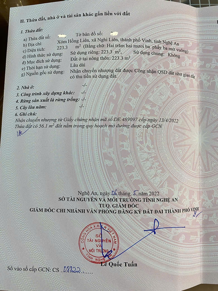 Dt 223m2 . Rộng 7.2 m