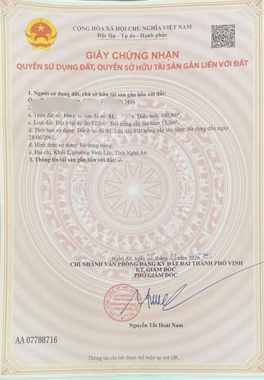 CƠ HỘI ĐẦU TƯ – SỞ HỮU LÔ ĐẤT ĐẸP TRUNG TÂM VINH LỘC
